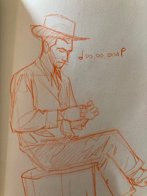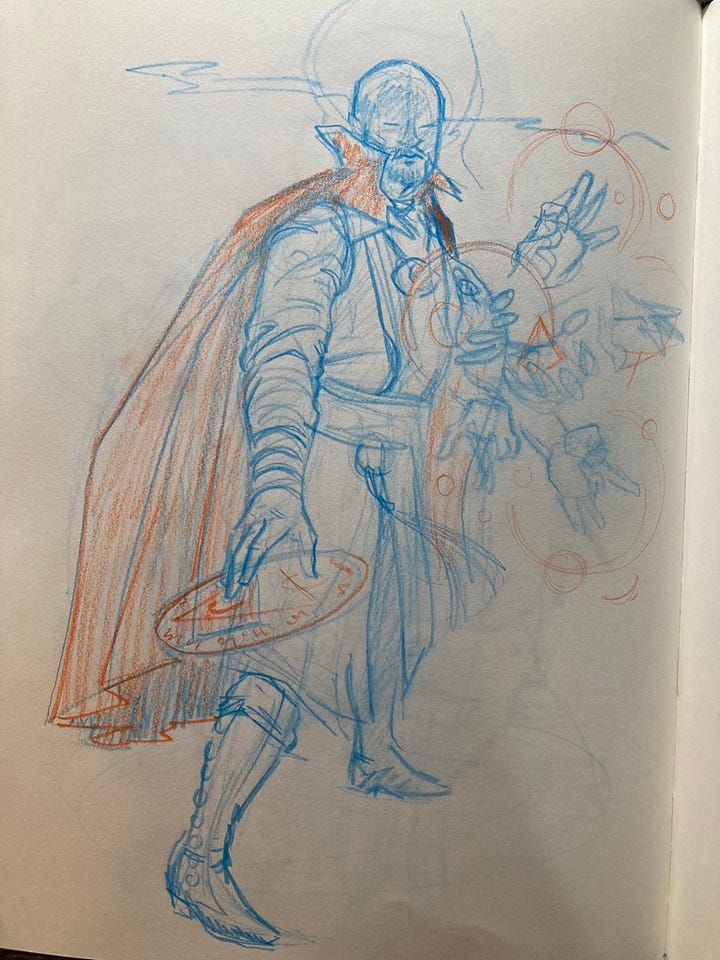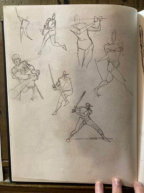 I so often draw figurative and narrative works that I want to explore more static compositions. My goal is to create some pieces that you would want to hang over your mantle.