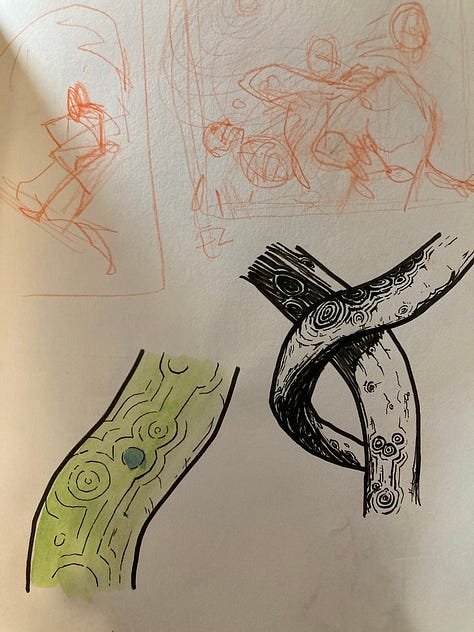 I am collaborating with a local artist in Atlanta to make a gallery show in May 2026. The loose theme is organic forms. Here is a test that I did in my sketchbook.